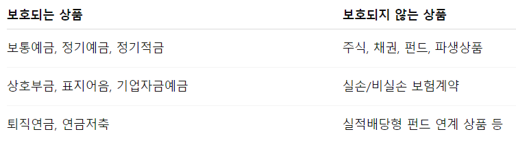 - 보호 방식: 예금 원금 + 이자 포함 금액을 일정 한도 내에서 보장