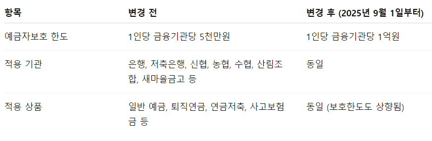 - 2025.09.01: 예금보호한도 1억원 상향 시행