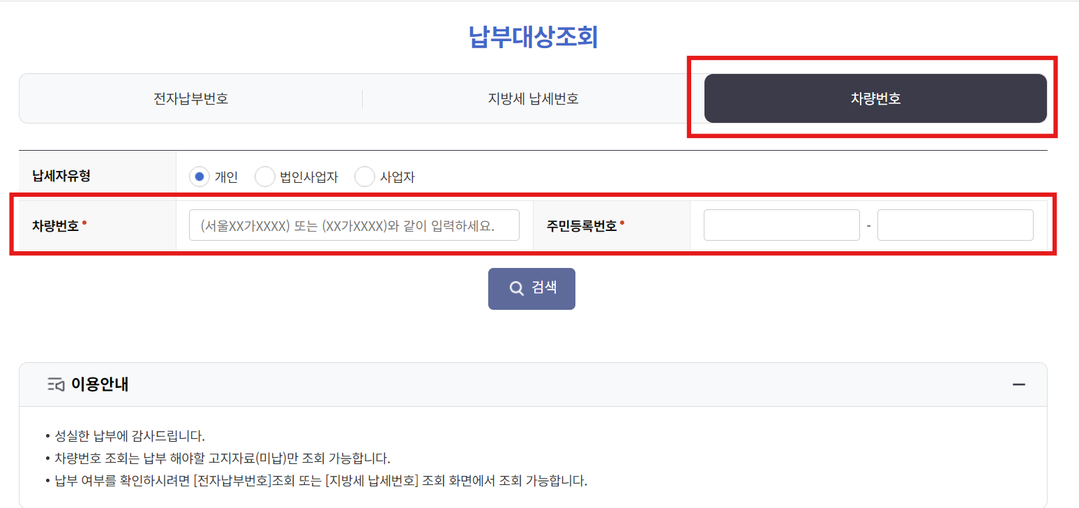 - 납부 후 위택스 또는 차량등록사업소에서 납부 내역 확인 가능