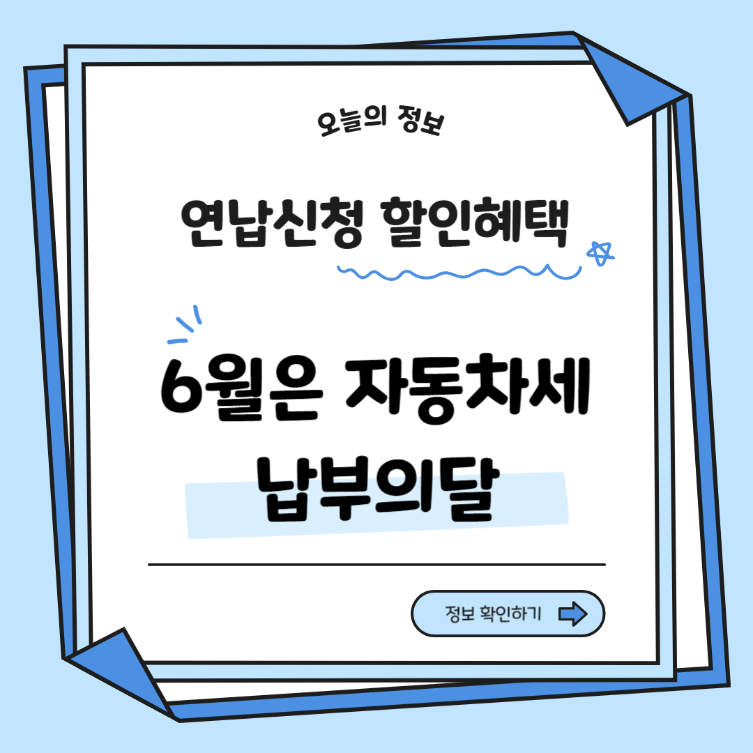 특히 6월은 정기분 자동차세 납부기간이자, 하반기분 자동차세를 미리 납부하면 할인 혜택을 받을 수 있는 연납 신청 기간이기도 합니다.