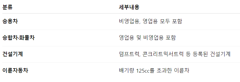 자동차세는 다음과 같은 차량에 부과됩니다.