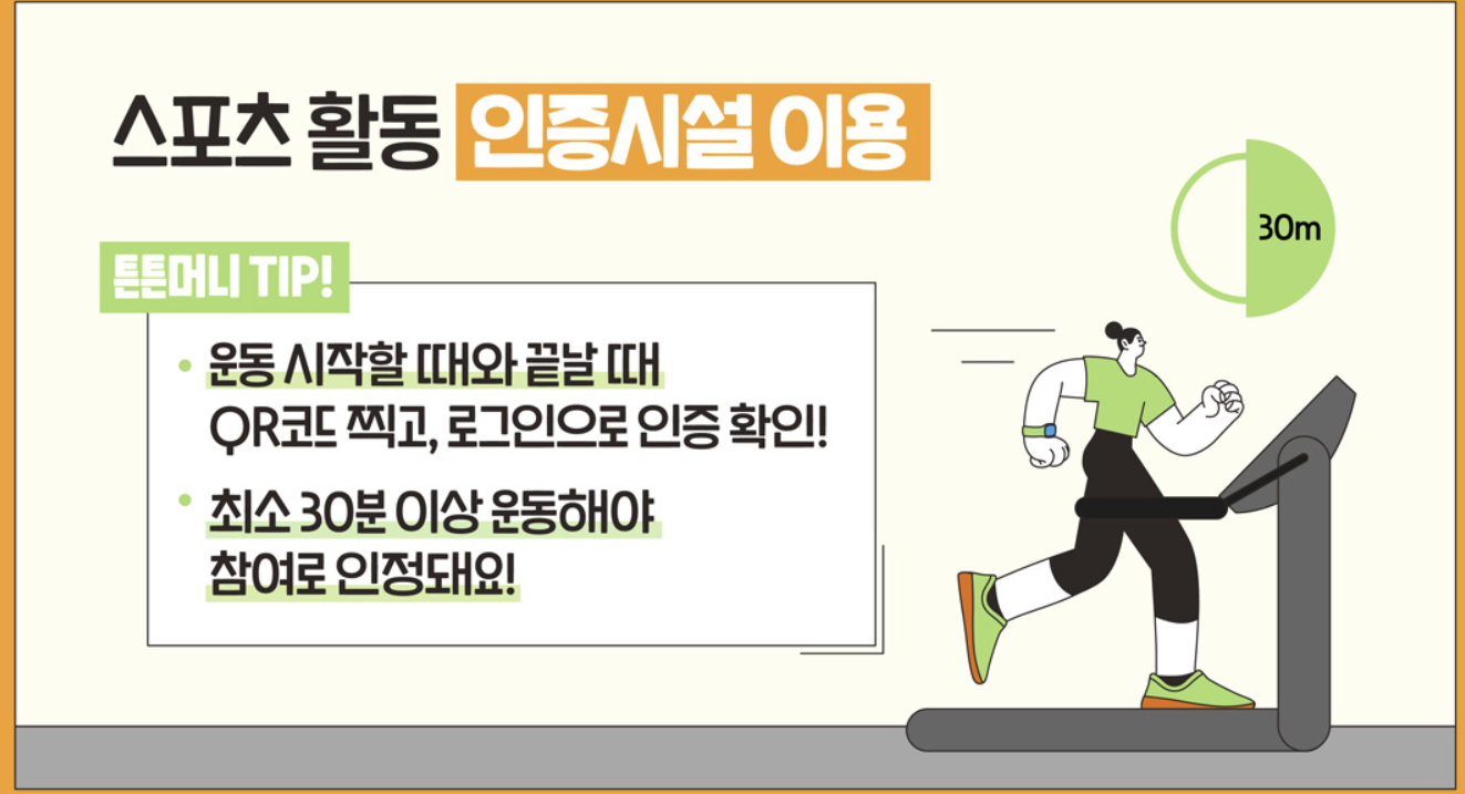 포인트 적립도 쉽고, 사용처도 넓기 때문에 운동 습관을 들이기에 더없이 좋은 기회가 될 것입니다.