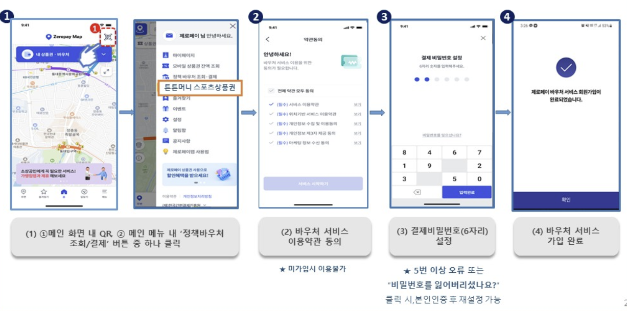 → 전환 및 사용을 위해서는 제로페이 바우처 서비스 가입이 필수입니다. 미가입자는 제로페이 앱 내에서 간단히 가입하실 수 있습니다.