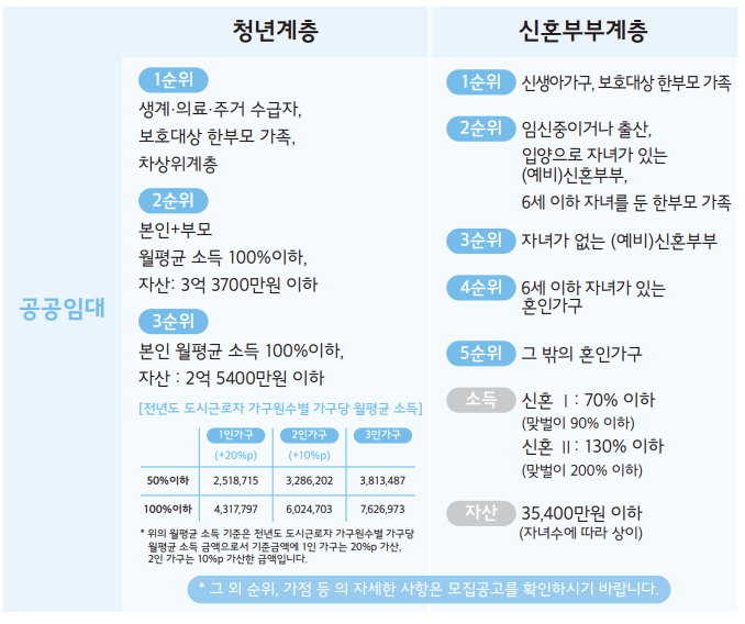 (2) 공공임대 자격기준 (청년/신혼부부 별도)