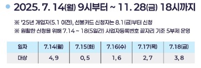 ✅ ‘25년 신규 개업자와 선불카드 신청자: 8월 1일부터 신청 가능