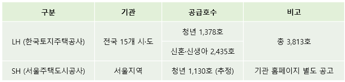 따라서 본인의 신청자격요건을 반드시 확인하시고 LH청약플러스 또는 해당 기관의 공식 공고문을 통해 지역별 상세 공급 내용과 일정도 꼭 확인하시기 바랍니다.