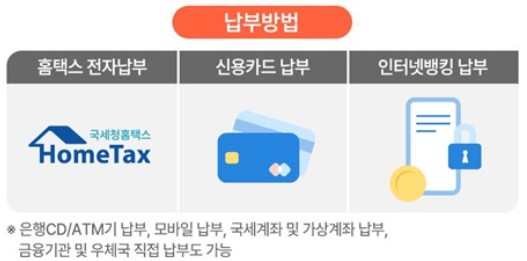 - 홈택스 전자납부: 계좌이체 또는 신용카드로 바로 납부