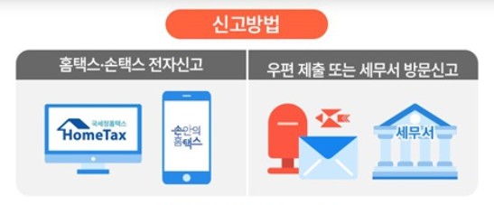 신고는 전자신고, 우편 또는 직접 세무서를 방문하여 할 수 있습니다. 단, 홈택스 및 손택스를 이용한 전자신고가 가장 빠르고 간편합니다.