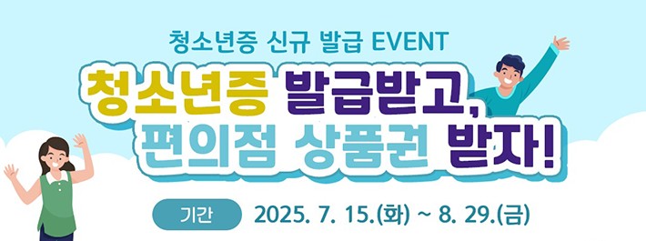 2025년 7월 15일(화)부터 8월 29일(금)까지 청소년증 신규 발급 이벤트가 열립니다.