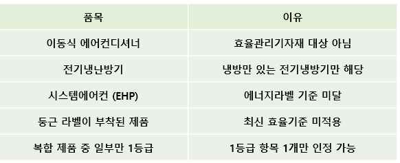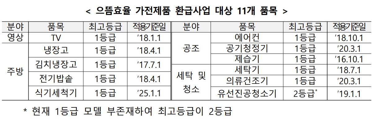 - 지원대상: 최상위 효율등급의 가전제품