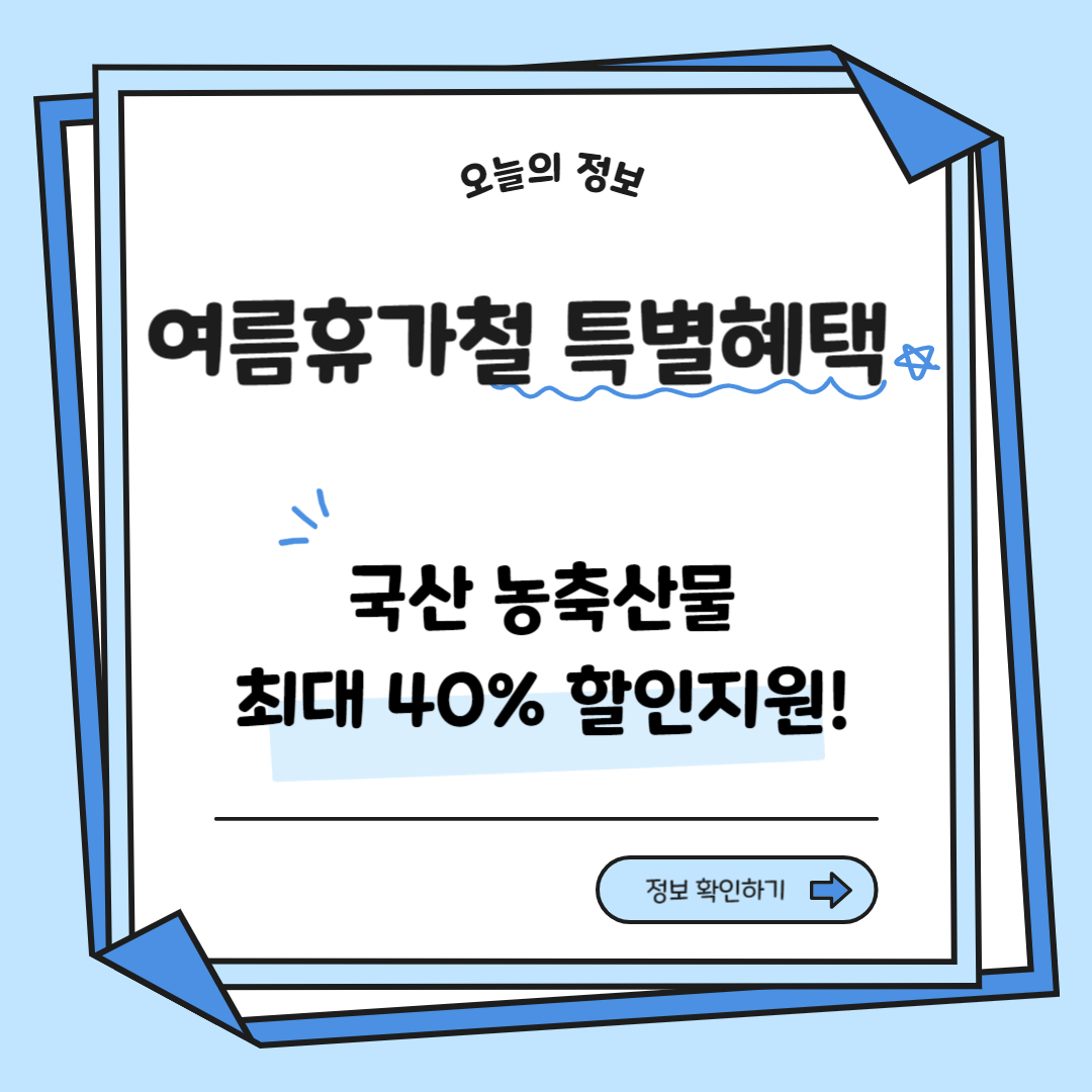 이번 할인 지원 사업은 여름철 국산 농축산물의 소비 증가 시기에 맞춰 가계의 식비 부담을 덜고, 국산 농축산물의 소비를 촉진하기 위한 정부 주도 사업입니다. 소비자들은 이 기간 동안 참여 유통업체에서 국내산 농산물, 육류 등을 최대 40% 할인된 가격에 구입할 수 있습니다.