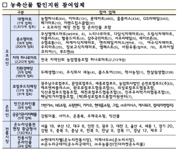 농축산물 할인 참여 유통업체 및 할인 쿠폰 정보