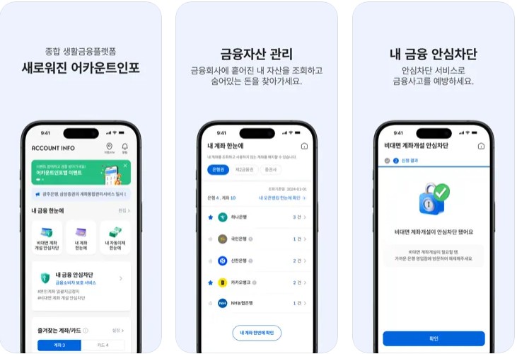 모바일 사용자라면 금융결제원의 ‘어카운트인포’ 앱도 추천드립니다.
