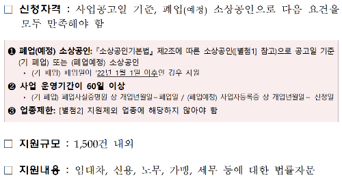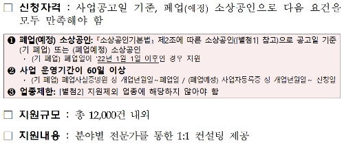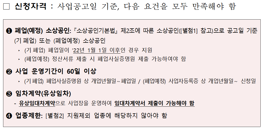 - 2022년 1월 1일 이후 폐업했거나 폐업 예정인 소상공인