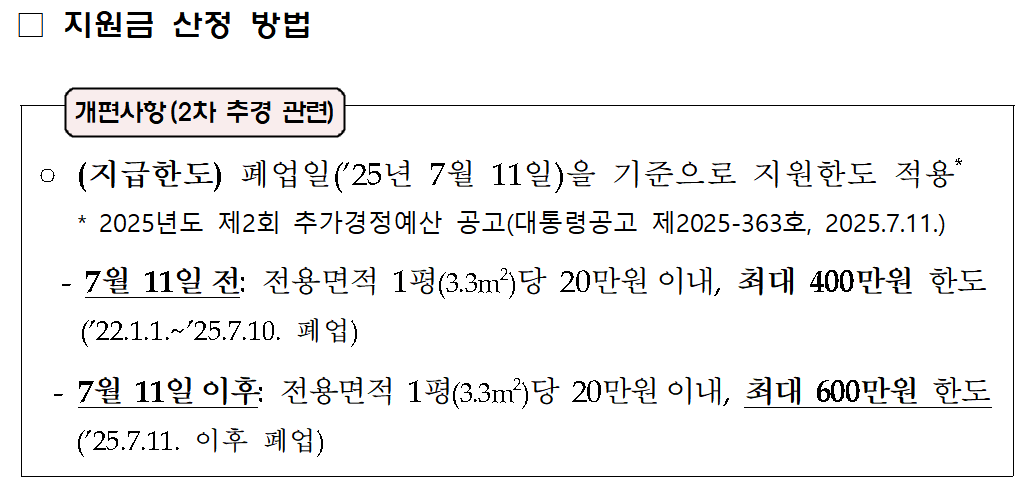 - 2025년 7월 11일 이후 폐업: 최대 600만 원