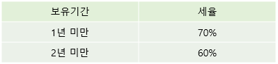 - 보유 1년 미만 → 세율 70% 적용