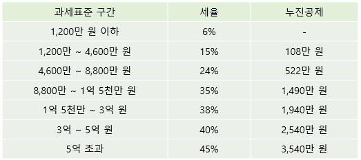 2) 일반 과세 누진세율 (2년 이상 보유 시)