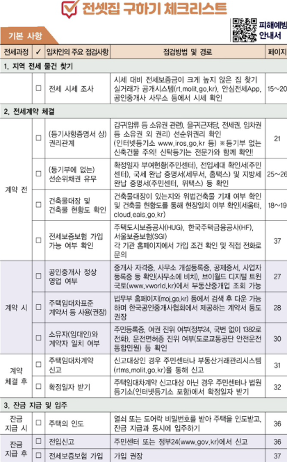 전셋집 구하기 체크리스트(국토부 발행)
