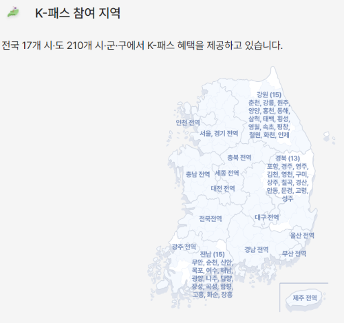- 본인 거주지가 K-패스 참여 지자체인지 확인