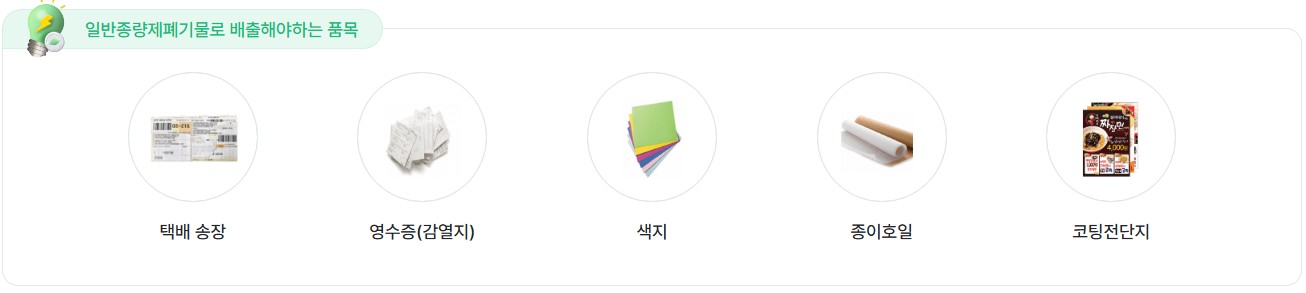 - 기타 종이: 코팅된 전단지, 스프링 노트, 비닐 제거 후 배출