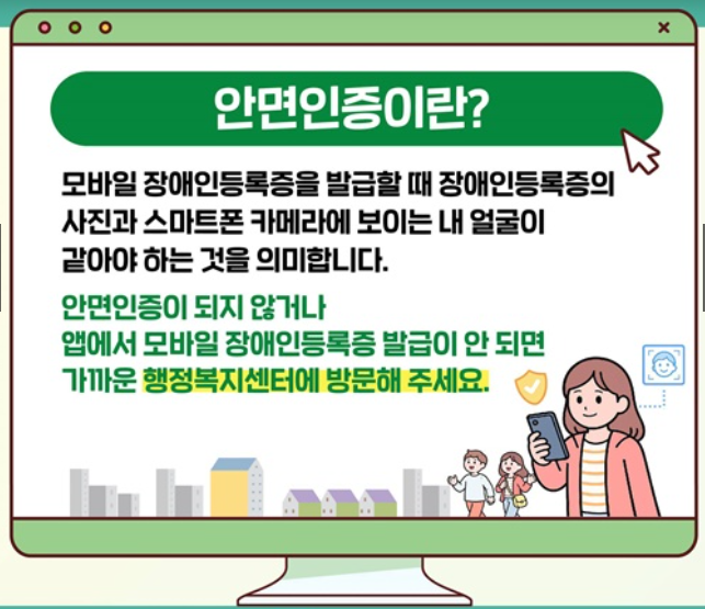 모바일 장애인 등록증 발급 과정에서는 안면인증 절차가 필수로 진행됩니다.