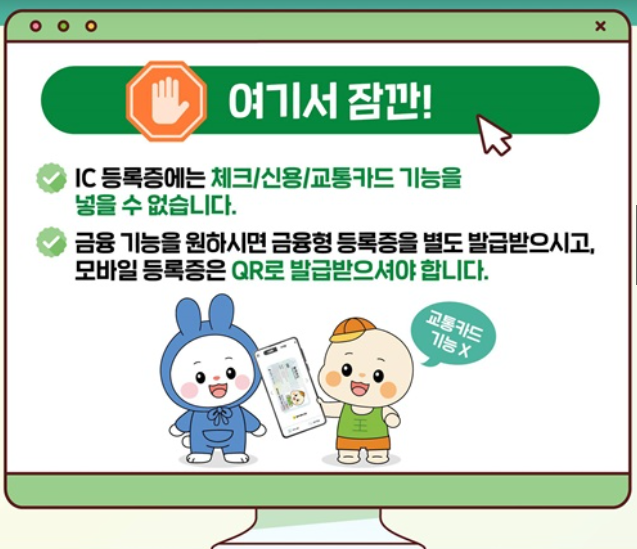 ✔ IC 등록증에는 신용, 체크, 교통 기능을 넣을 수 없습니다