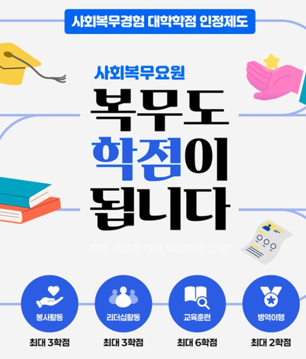 사회복무요원 학점 인정 기준 (봉사·교육·리더십·병역)