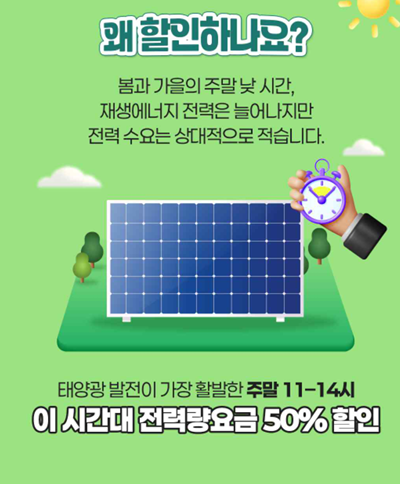 이 시간대에는 전기 사용량이 적고 태양광 발전이 많기 때문에 남는 전력을 활용하기 위한 정책입니다.