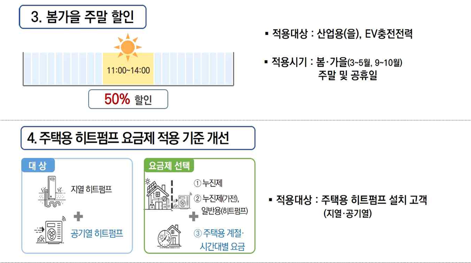 특히 봄.가을 주말 낮에는 최대 50% 할인 혜택이 적용되어 전기사용 패턴을 잘 활용하면 실질적인 비용절감이 가능합니다.