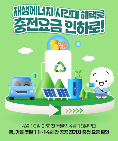2026년 4월 18일부터 전기차 충전요금에도 주말 할인이 적용됩니다.